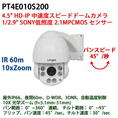 パン速度: 45°/sec、チルト速度: 30°/sec